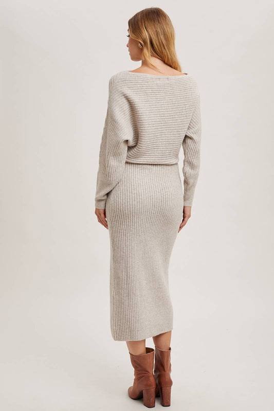 The Rory One Shoulder Side Slit Midi Knit Sweater Dress